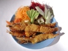 Pollo o lomo de cerdo capeado acompañado de verduras en salsa agridulce |